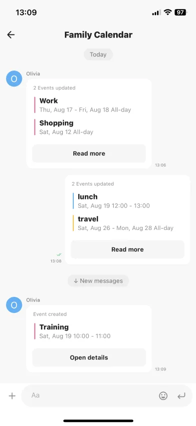 Before In calendar chat