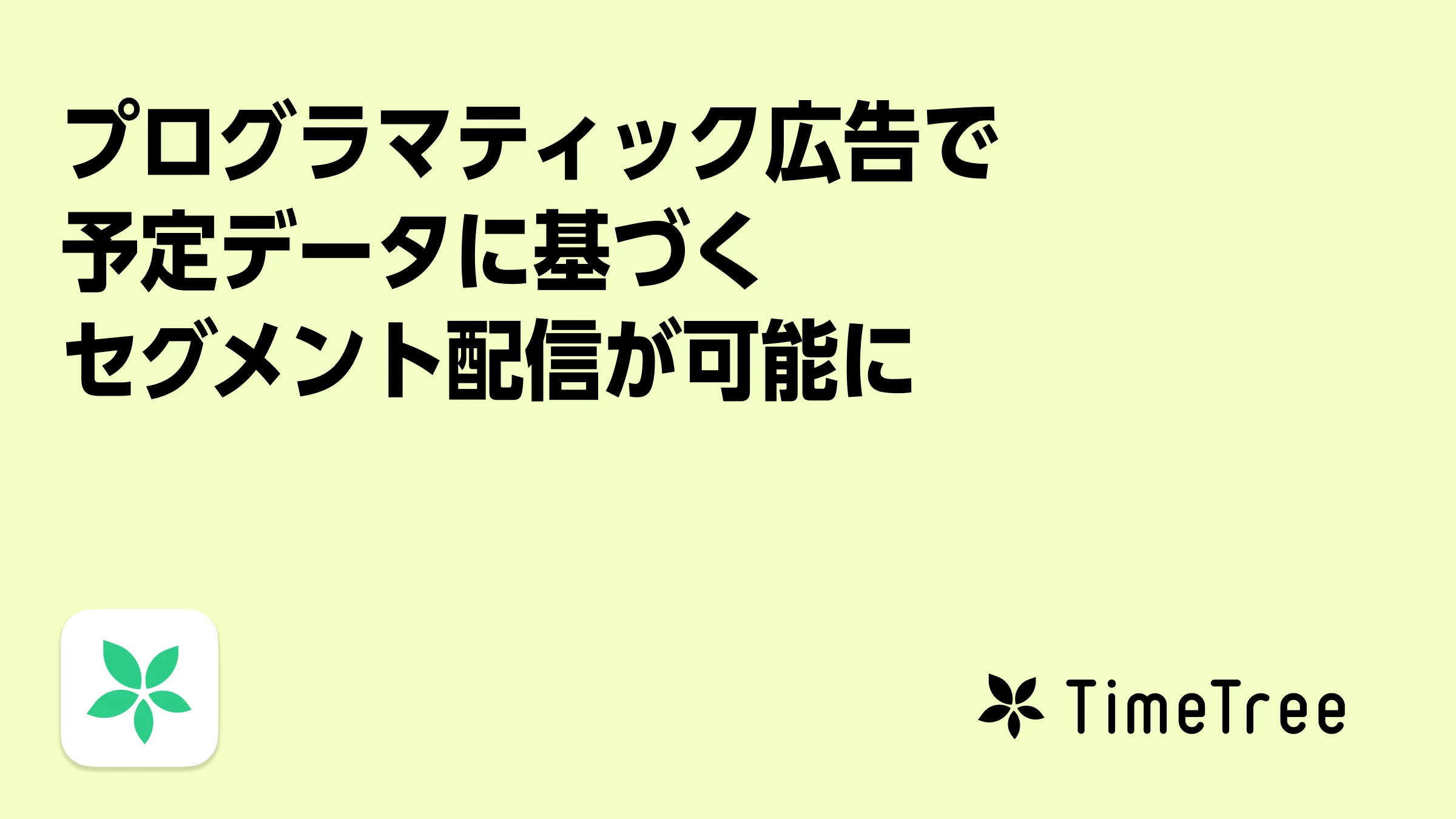 株式会社TimeTree(本社:東京都新宿区、代表取締役社長:深川 泰斗、以下TimeTree)は、予定データに基づくターゲティング配信をプログラマティック広告で実現する「TimeTree 未来行動PMP(※1)」の提供を開始したことをお知らせします。