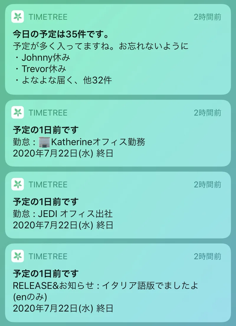 ふだん仕事でTimeTreeをお使いの方々から「仕事の予定管理には便利だけどスマホの通知が多すぎて......」との声をいただき、最近追加した機能です。