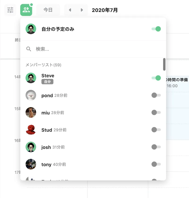 Google Calendarなどに慣れている方は、登録した予定が自動的に全メンバーへ共有されることにすこし抵抗を感じるでしょう。しかし使い慣れてくると、なかなか良いことに気づくはずです(笑)。