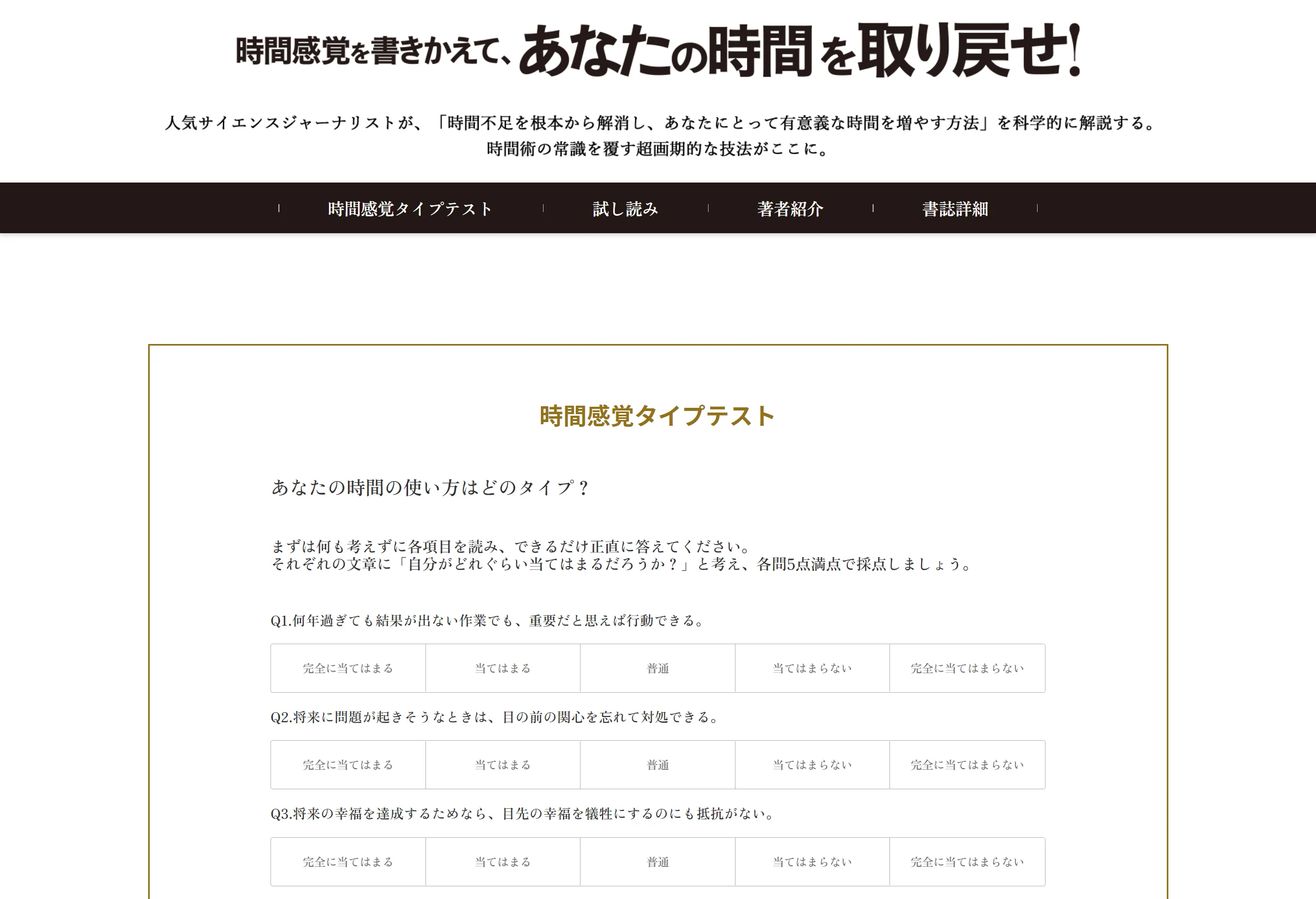 「YOUR TIME」特設サイトでは、自分の予期と想起のタイプを診断できる時間感覚テストが受けられます