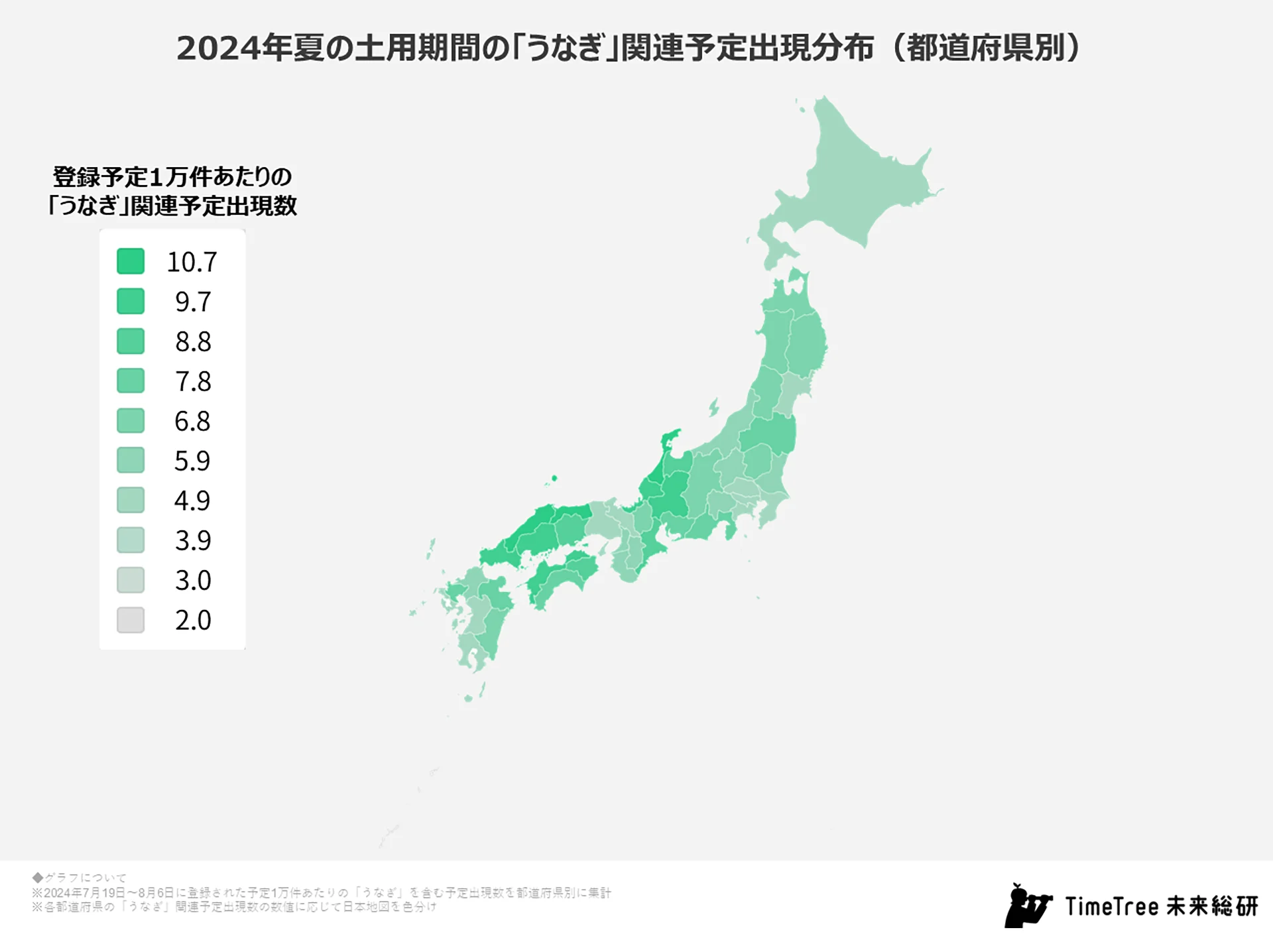 株式会社TimeTree(本社:東京都新宿区、代表取締役社長:深川 泰斗)の社内研究所『TimeTree未来総合研究所』(https://timetreeapp.com/intl/ja/future-research-institute)は、TimeTreeユーザーの予定動向をもとに、夏の風物詩である「土用の丑の日」についてのトレンドを分析しました。