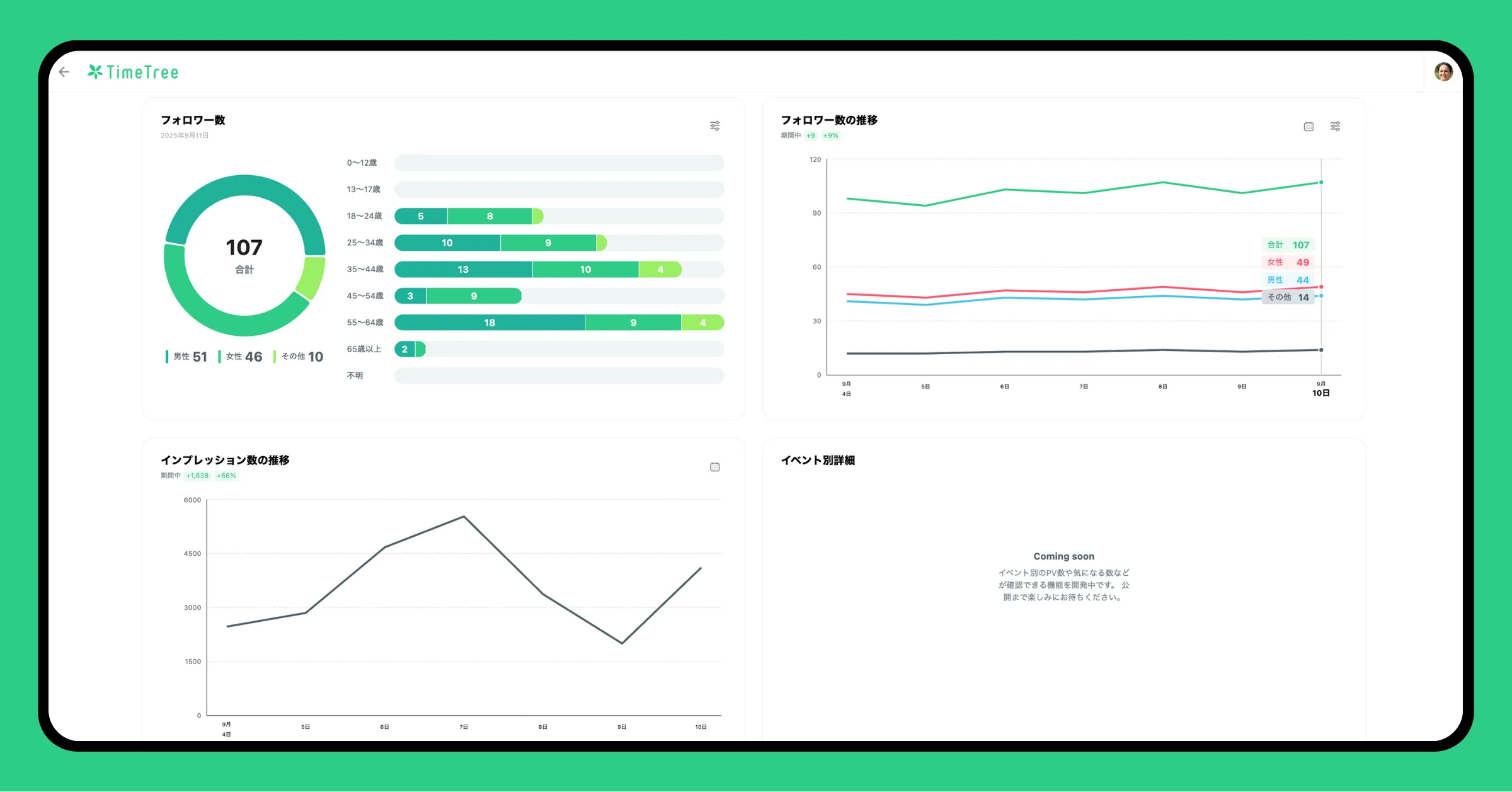 フォロワーの属性や、どんなイベントに注目が集まっているかを知ることができます。