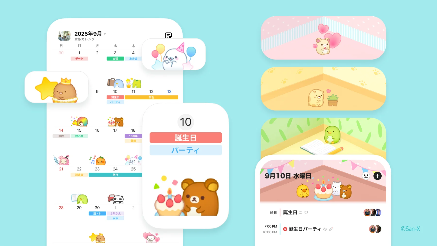 リラックマ、すみっコぐらし、たれぱんだなど、おなじみのキャラクターがカレンダーを通してあなたの生活をかわいく楽しく彩ってくれます。