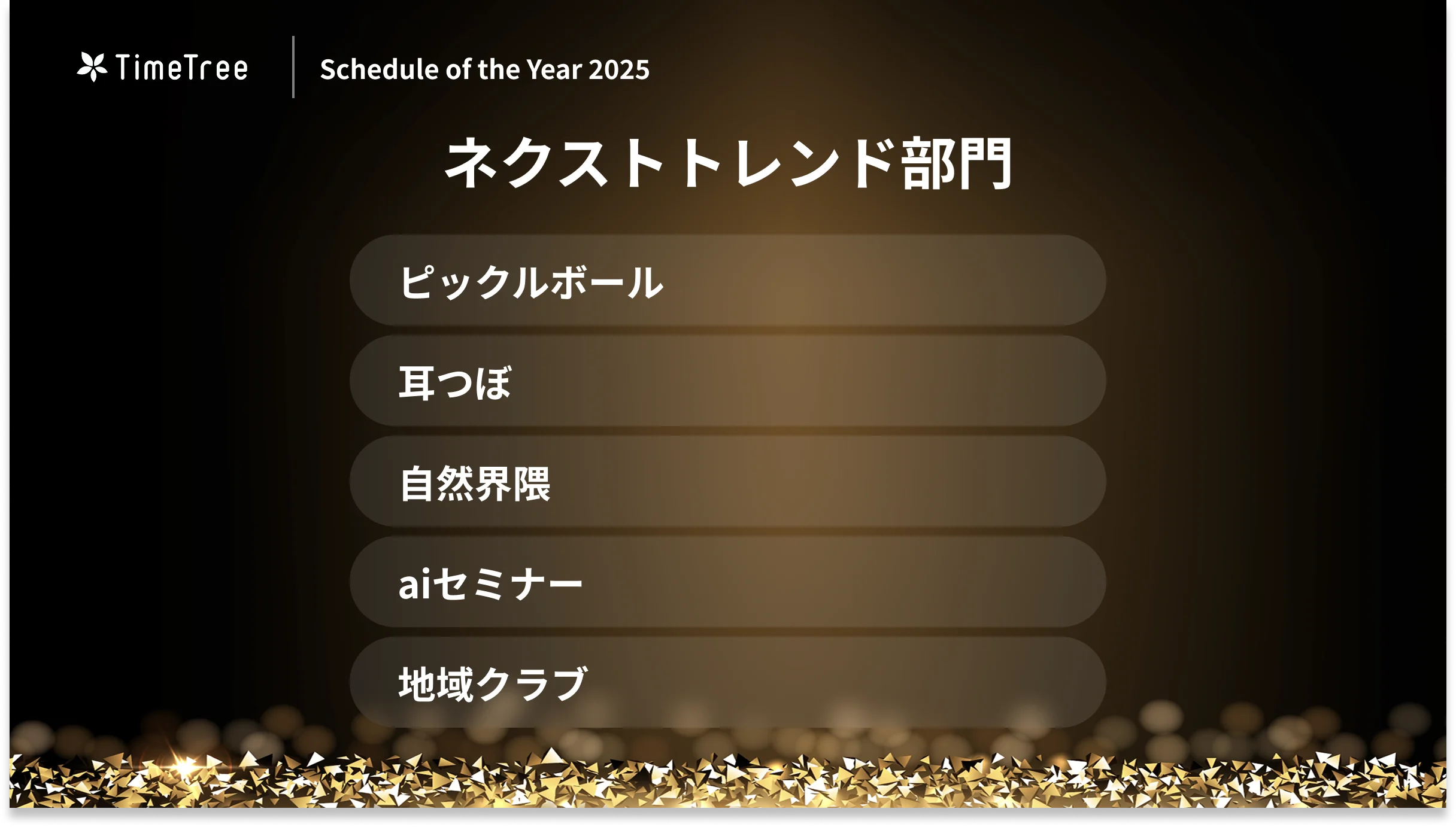 最後に、TimeTree未来総研がジャンルを限らず、次に来るトレンド予定をピックアップした「ネクストトレンド部門」では、「ピックルボール」「耳つぼ」「自然界隈」「aiセミナー」「地域クラブ」の5つを選出しました。