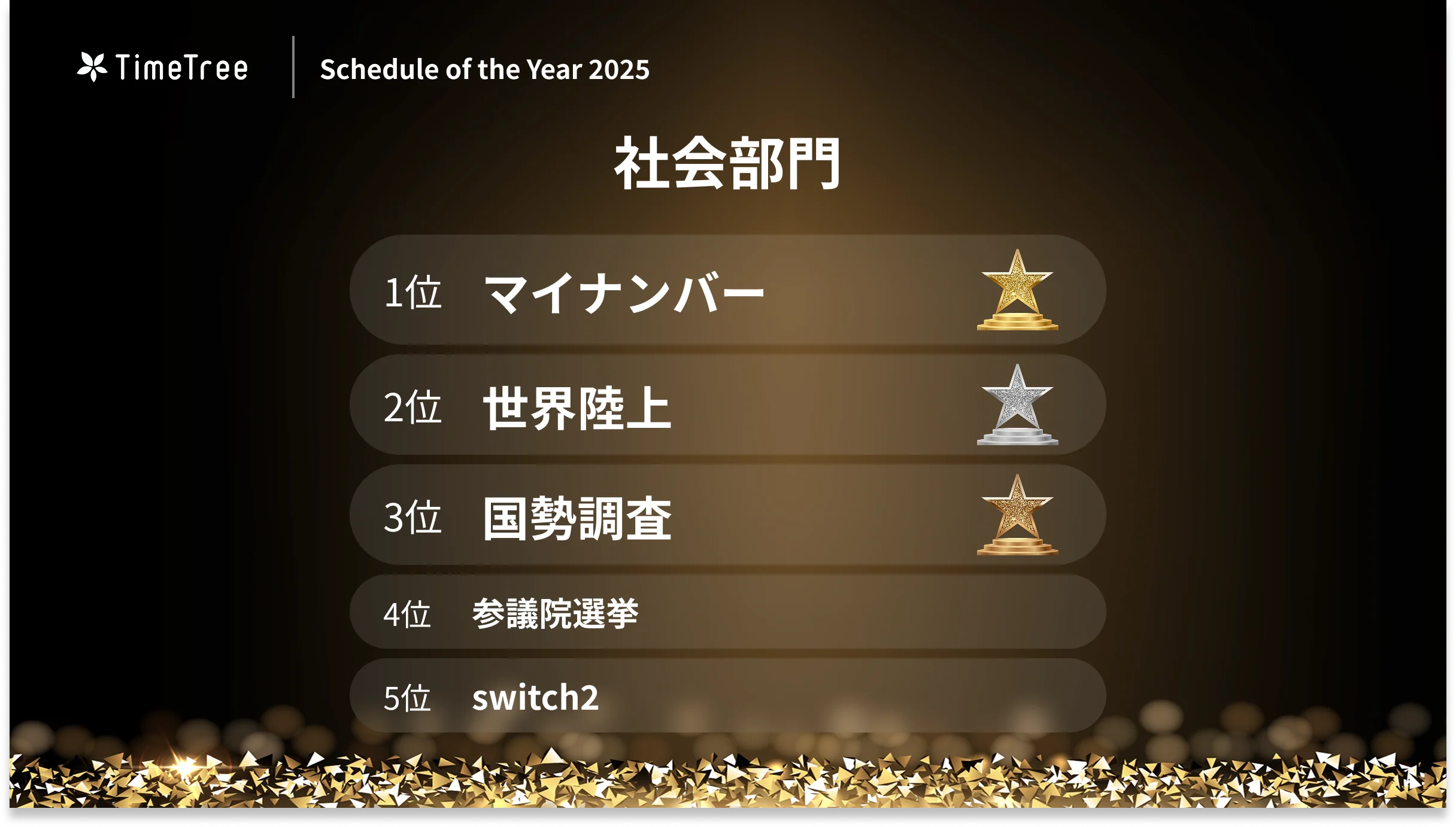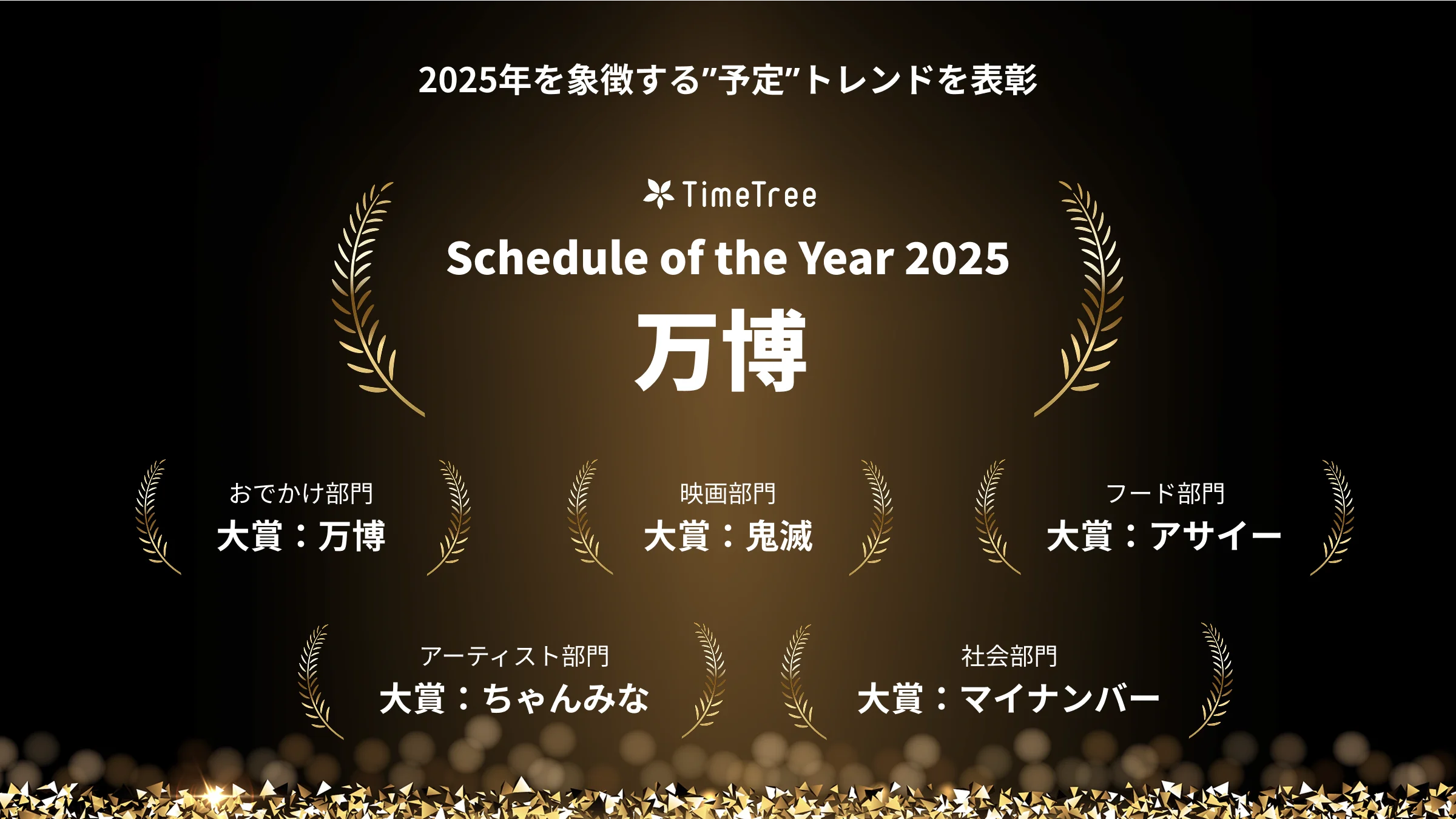 株式会社TimeTree(本社:東京都新宿区、代表取締役社長:深川 泰斗)の社内研究所『TimeTree未来総合研究所』(https://timetreeapp.com/intl/ja/future-research-institute)は、「カレンダーの日」として知られる12月3日、国内累計3000万超のユーザーが「TimeTree」のカレンダーに登録したデータをもとに、2025年を象徴する“予定”トレンドを表彰するアワード「TimeTree Schedule of the Year 2025」を発表いたしました。