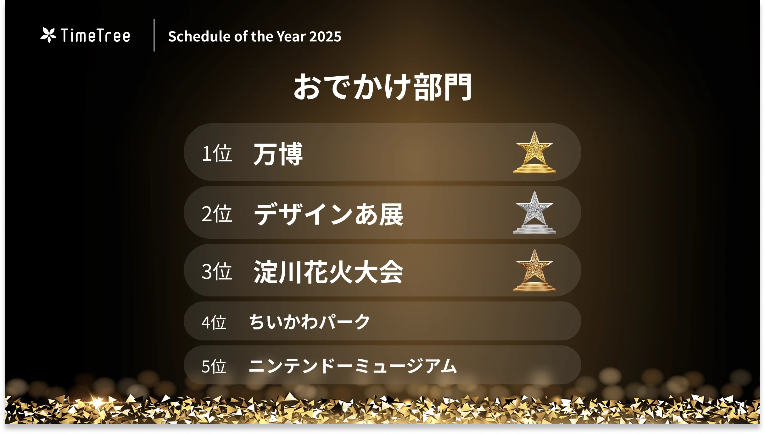 おでかけ先のイベントや施設などの予定を対象とした「おでかけ部門」では、Schedule of the Yearにも輝いた「万博」が1位に。