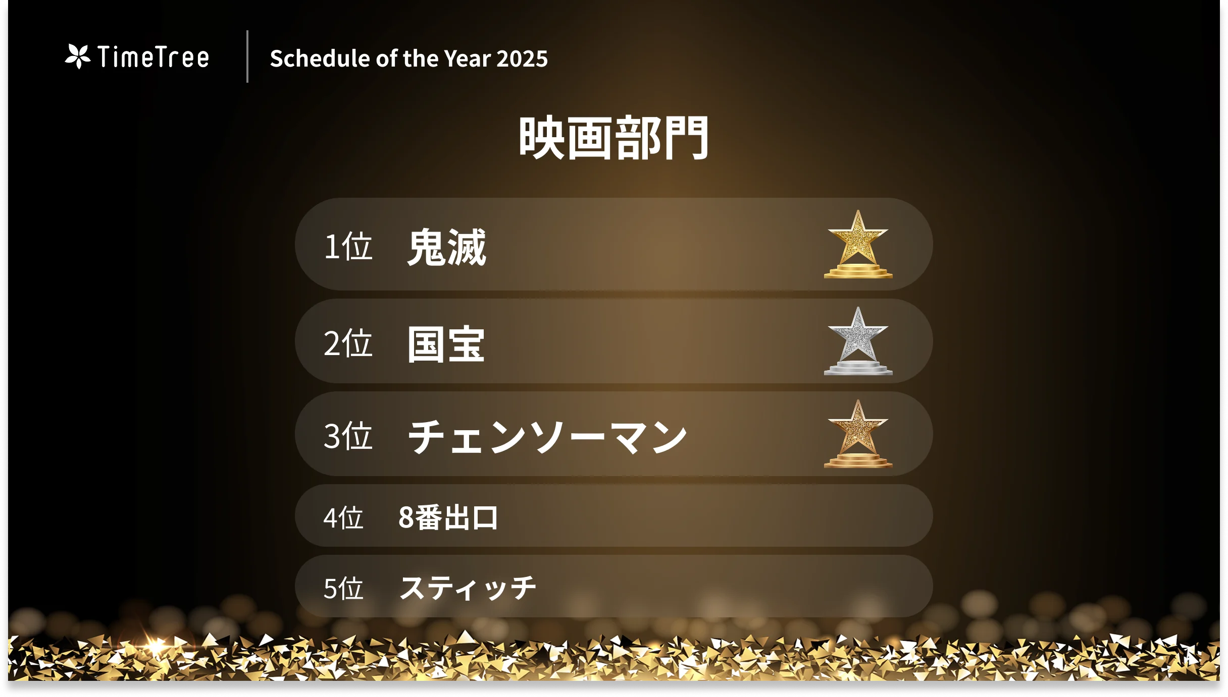 2025年に公開された映画作品に関連した予定が対象となる「映画部門」では、7月18日に劇場版三部作の第一章を公開した「鬼滅(の刃)」が1位に。
