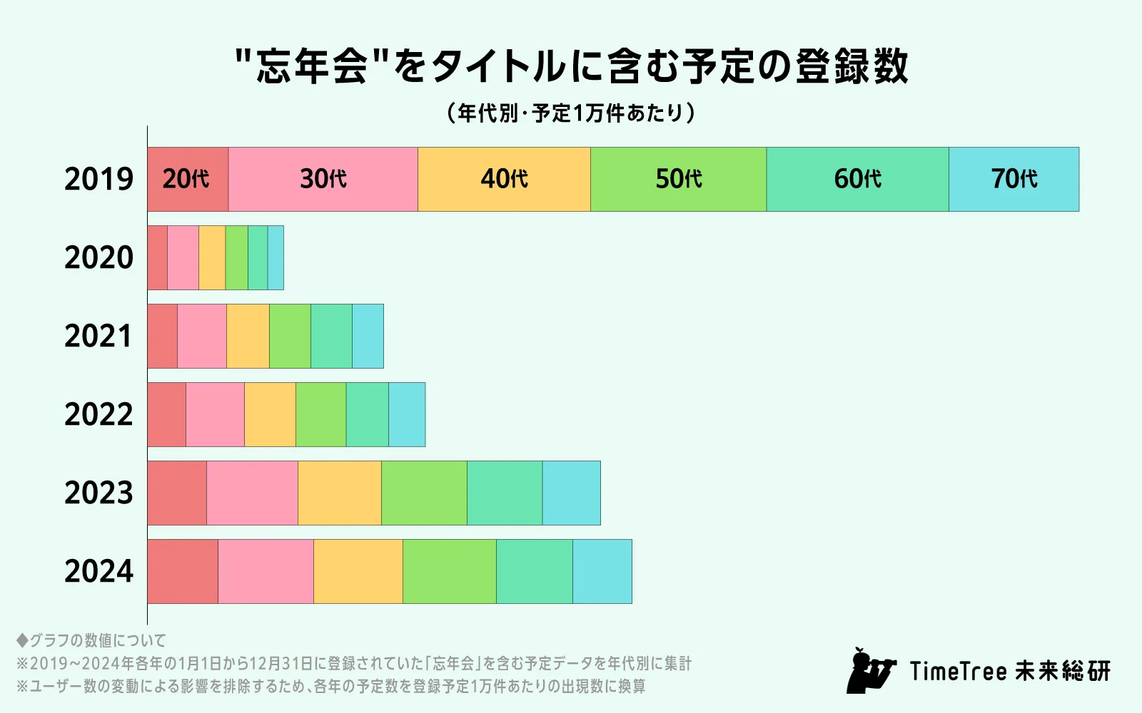 続いて、「忘年会」「新年会」などのワードについて。ここにもコロナの影響がうかがえます。