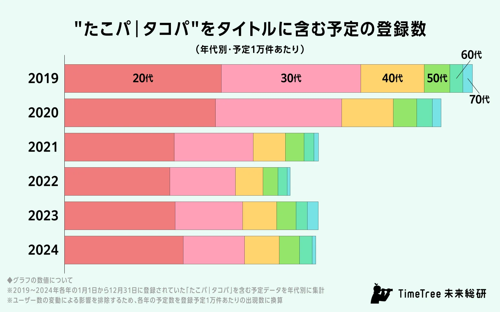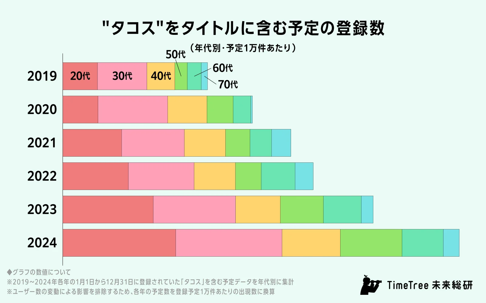 それが、予定データ上で10代を中心に増えている「タコパ」「タコス」というワードです。