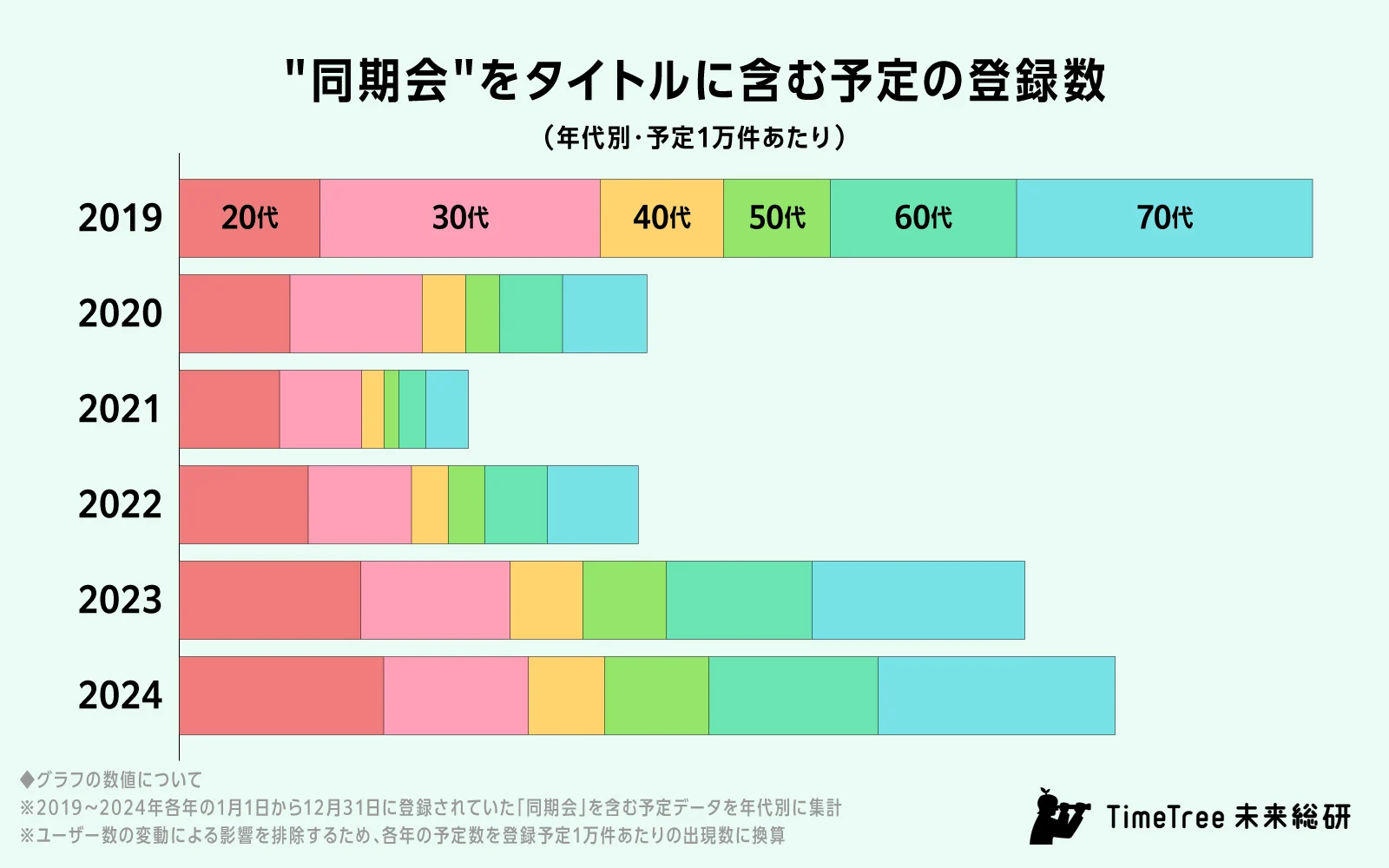 深川 「『忘年会』『新年会』などは、コロナ前の2019年をピークに大きく減少し、その後も戻っていません。一方で、『同期会』のようなワードは、2019年レベルまで戻ってきている。会社単位の飲み会が減り、同世代・少人数の飲み会へとシフトしているように見えます」