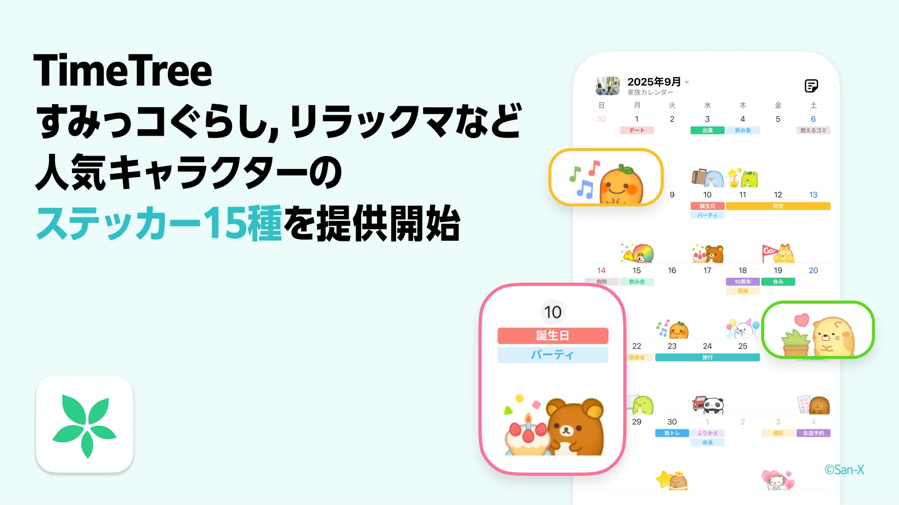 世界中の人々の時間を豊かにする株式会社TimeTree(本社:東京都新宿区、代表取締役社長:深川 泰斗)が提供するカレンダーシェアアプリ「TimeTree」は、2025年10月2日(木)より、イマジニア株式会社が展開する『すみすみ』のキャラクターステッカーをアプリ内で無料提供いたします。今回のラインアップには、すみっコぐらしやリラックマなど、サンエックスを代表する人気キャラクターが多数登場し、日々のカレンダーを可愛くデコレーションしながら、TimeTreeでの予定づくりをより楽しく彩ります。